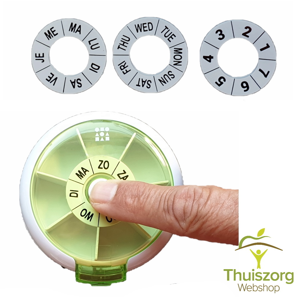 Ieder doosje is voorzien van extra indicatie ringen voor de dag van de week die u naar wens kunt plaatsen.