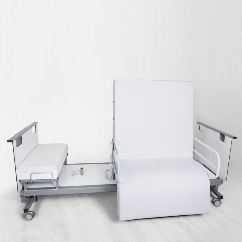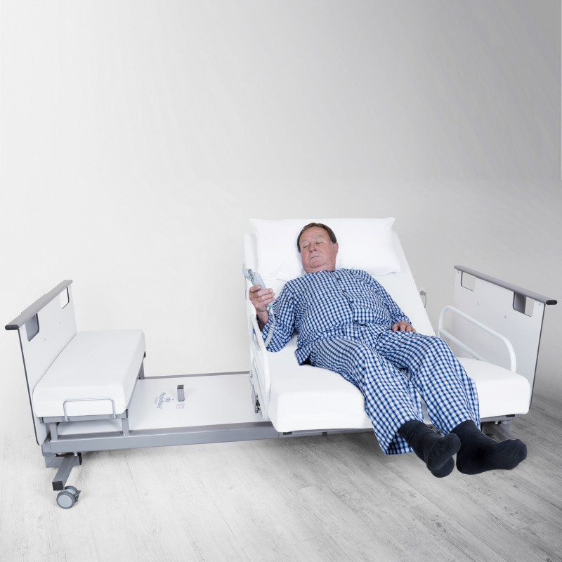 Het roterende medische bed Rotoflex is een echt compleet bed. Dit bed zal het leven voor gebruikers en hulpverleners gemakkelijker maken. Dankzij de vele innovaties helpt het bed de gebruiker zelfstandig te zijn. Dankzij de draaifunctie zal de persoon in moeilijkheden gemakkelijk in en uit bed kunnen stappen. Het bed heeft ook een variabele hoogtefunctie om de verzorger te helpen de persoon gemakkelijker te verzorgen door het op zijn hoogte te brengen, dit zal jouw rug ontlasten.