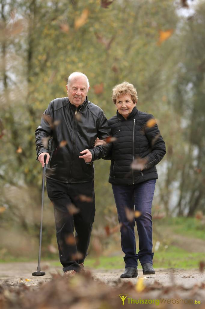 Niet altijd heeft men iets in de buurt waar men zijn wandelstok kan tegen steunen. Deze aluminium wandelstok Stabicane is hiervoor een praktische oplossing, hij is voorzien van een relatief zware rubberen voet die ervoor zorgt dat hij blijft staan terwijl men de handen vrij heeft. Tevens vergroot het sterk de veiligheid tijdens het stappen omdat de rubber uitstekende antislip eigenschappen heeft.