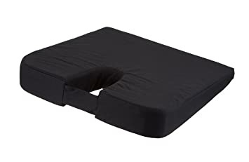 Door de uitsparing aan de achterkant van het kussen kan het stuitbeen zonder druk worden opgehangen. De constructie van het kussen omvat zowel standaard schuim als een royale laag van 2 cm hooggevoelig geheugenschuim voor verbeterd comfort.