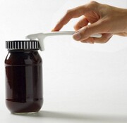 + Hij opent bokalen met schroefdeksels,