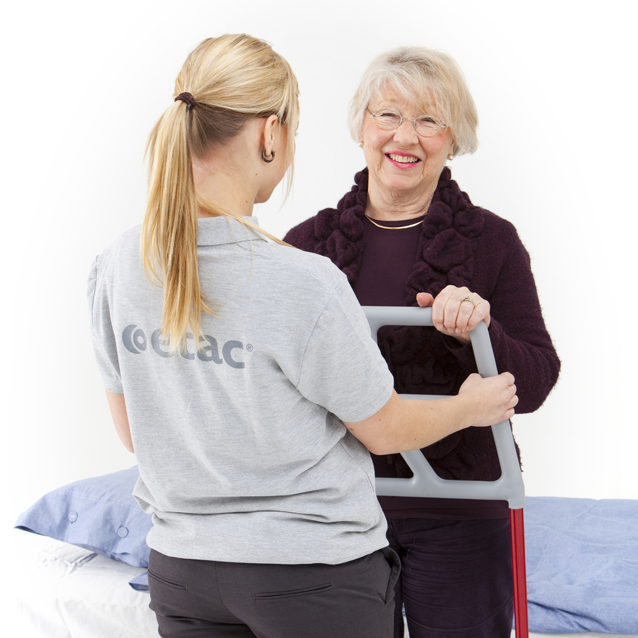 De sling wordt ingezet wanneer de gebruiker zich bij het opstaan niet zeker voelt. De sling ondersteunt hem of haar van achteren.