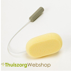 De steel van deze badspons kan gebogen worden om deze zo optimaal mogelijk aan te passen aan de individuele behoefte. Pastelkleurige spons met een verdikt, grijs handvat.