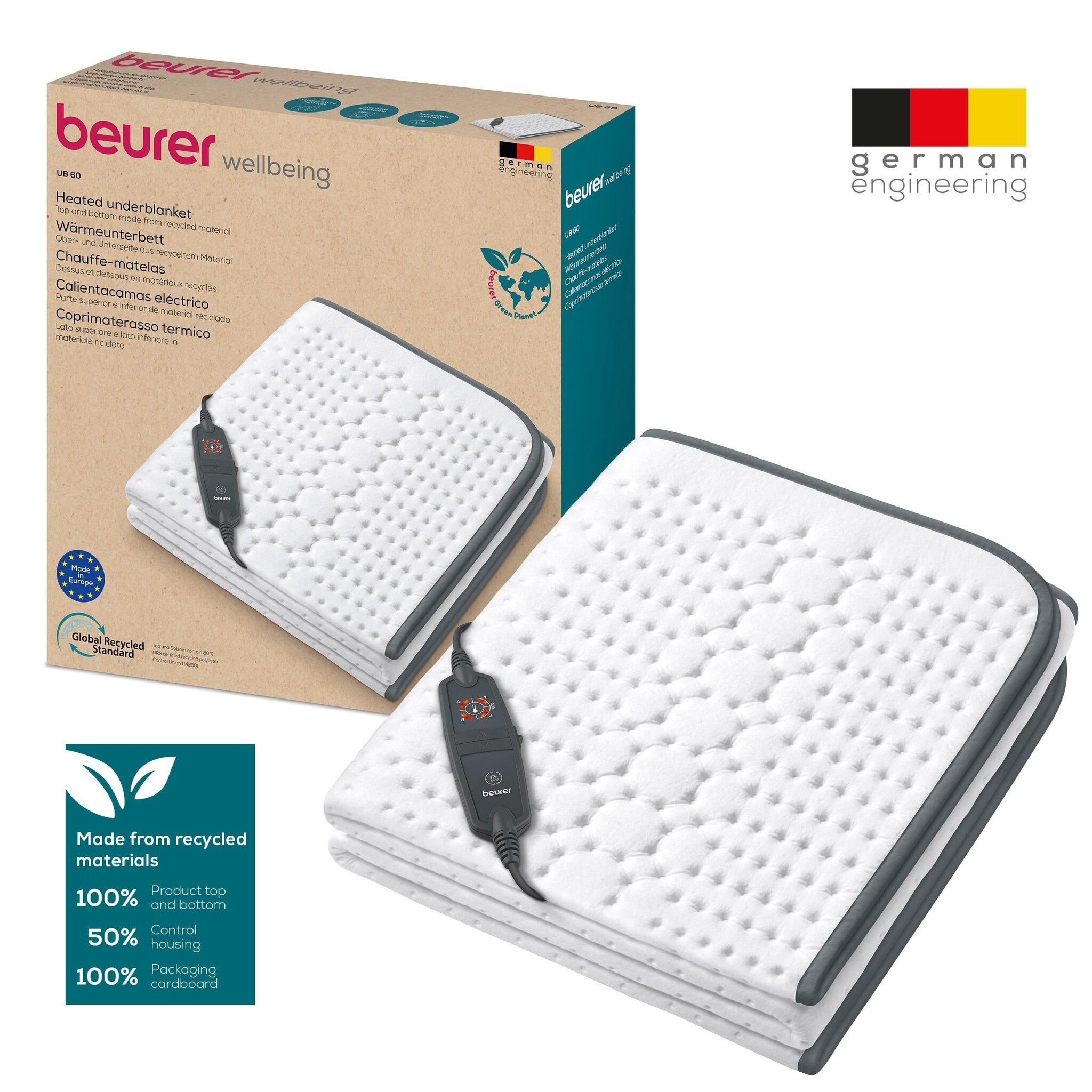 Geniet van een behaaglijke warmte en een rustige nachtrust met de UB 60 Underblanket uit de Green Planet-serie van Beurer. De boven- en onderkant van de onderdeken zijn gemaakt van ca. 80% gerecycled materiaal en de bedieningsbehuizing is gemaakt van ca. 50% gerecycled materiaal. De UB 60 Green Planet heeft bovendien twee ECO-temperatuurstanden en een efficiënte automatische terugschakelfunctie. Zo doet u niet alleen iets goeds voor uw slaap, maar ook voor het milieu.