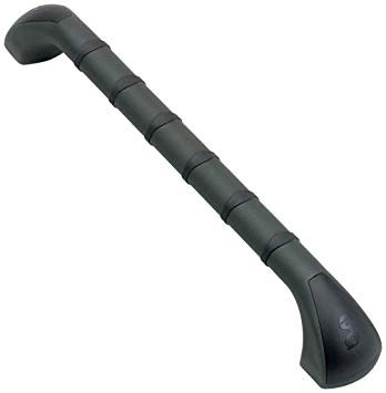 Mooie designbeugel in mat zwarte uitvoering, voorzien van antislipribbels. Wordt vooral gebruikt op donkere of stenen oppervlakken, waar hij minder opvalt. Kan binnen- en buitenshuis gebruikt worden.
