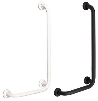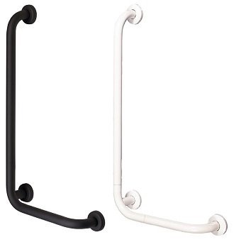 Antislip wandbeugels met 32 mm diameter. De L-vorm is vooral bedoeld om van zit tot stand te komen en helpt om bij elke fase van een beweging een ideaal steunpunt te bieden.