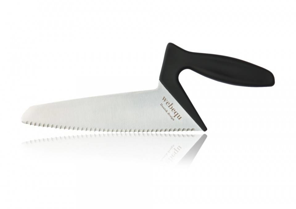 Close-up brood mes voor linkshandigen: (rechtshandige broodmessen hebben de tandjes aan de andere kant van het mes).