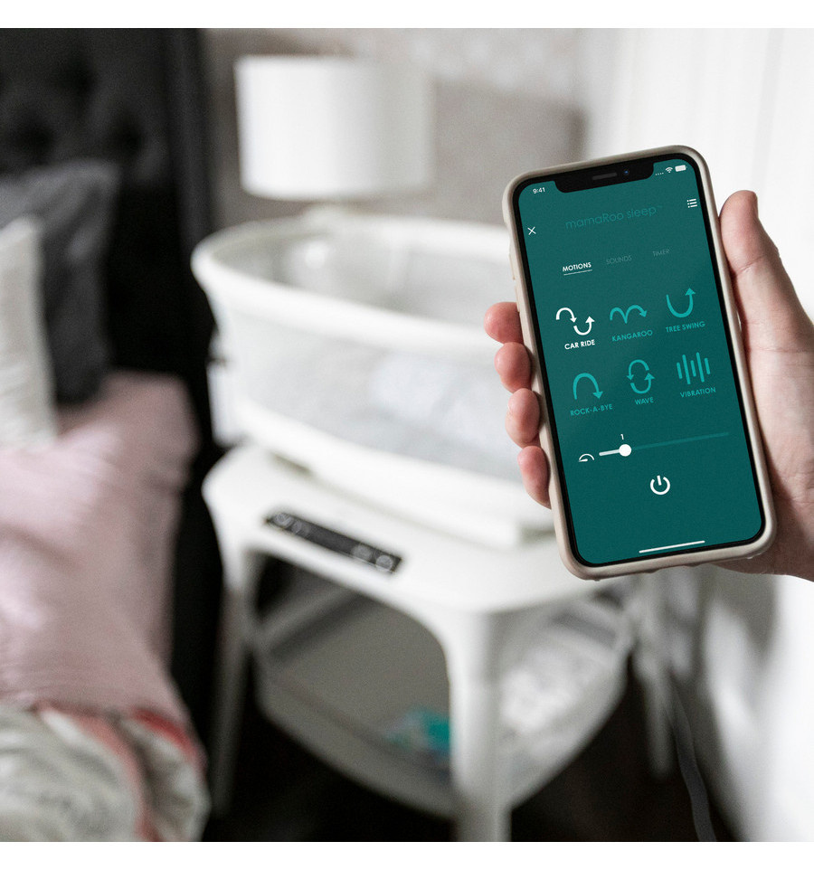 Kalmeer en troost de baby in de 4moms mamaRoo-slaapwieg met zijn natuurlijke stuiterende en zwaaiende bewegingen die net als ouders bewegen. Het beschikt over 5 unieke bewegingen (autorit, zwaai, kangoeroe, boomschommel en rock-a-bye), en 5 snelheidsopties om de perfecte combinatie te vinden waar baby van houdt. Je kunt ook een van de 4 witte ruis-opties spelen (regen, oceaan, ventilator en shh). Bedien alle functies eenvoudig via de 4moms-app op een compatibel smartapparaat. De 4moms-app beschikt ook over een timer die kan worden gebruikt om een routine voor het slapengaan vast te stellen en de slaap te verbeteren. De mamaRoo-slaapwieg biedt een stevig, vlak slaapoppervlak dat voldoet aan de richtlijnen voor veilig slapen van de AAP.