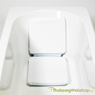 Een badkussen dat zowel de zitting als de rug omvat. De hoes is waterdicht en antislip, kan gemakkelijk gereinigd worden. Onderaan en op de rug zitten 4 zuignapjes om alles stevig op zijn plaats te houden.