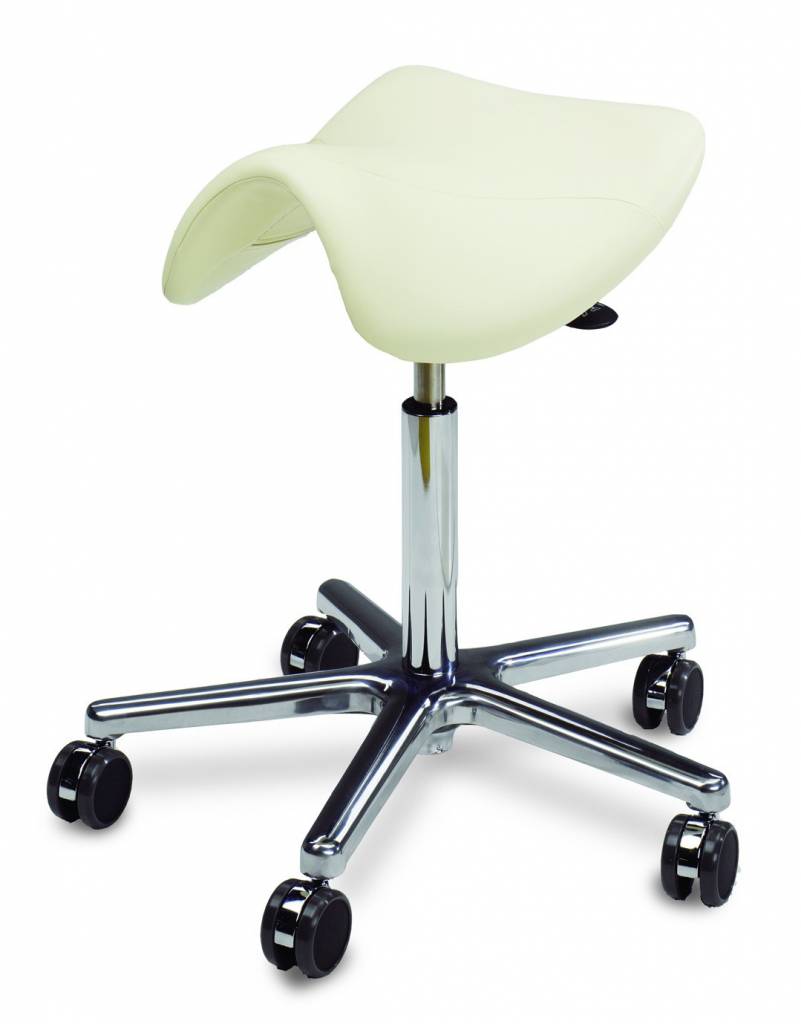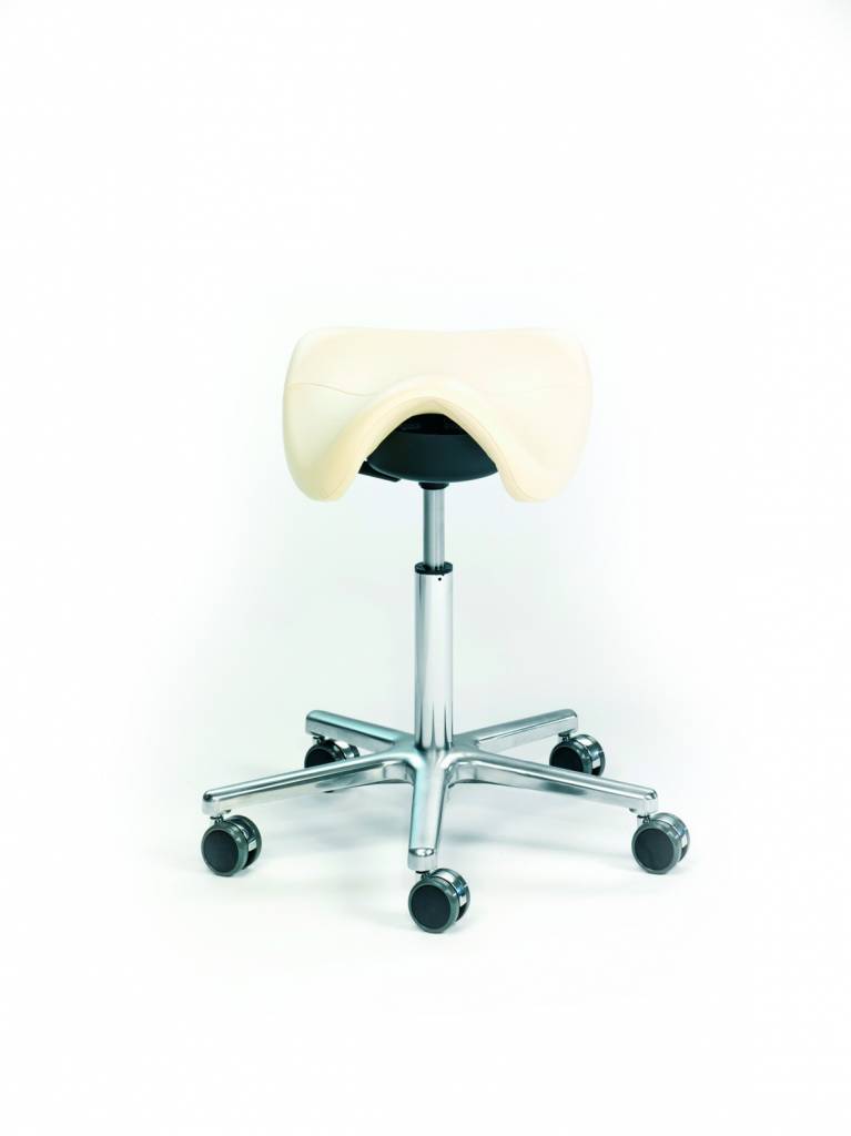 Swippo is een zadelstoel met een verstelbare en draaibare zitting en een eigentijds design. De ideale werkstoel voor zittend en staand werken. Swippo heeft een naar voor en achter verstelbare zitting over 14°, deze houding kan vastgezet worden. Voorzien van 5 stevige wielen voor harde bodem of zachte bodem. Een variant hierop zijn drukgeremde wielen. Standaard hoogteverstelbaar met gasveer van 54 tot 74 cm.